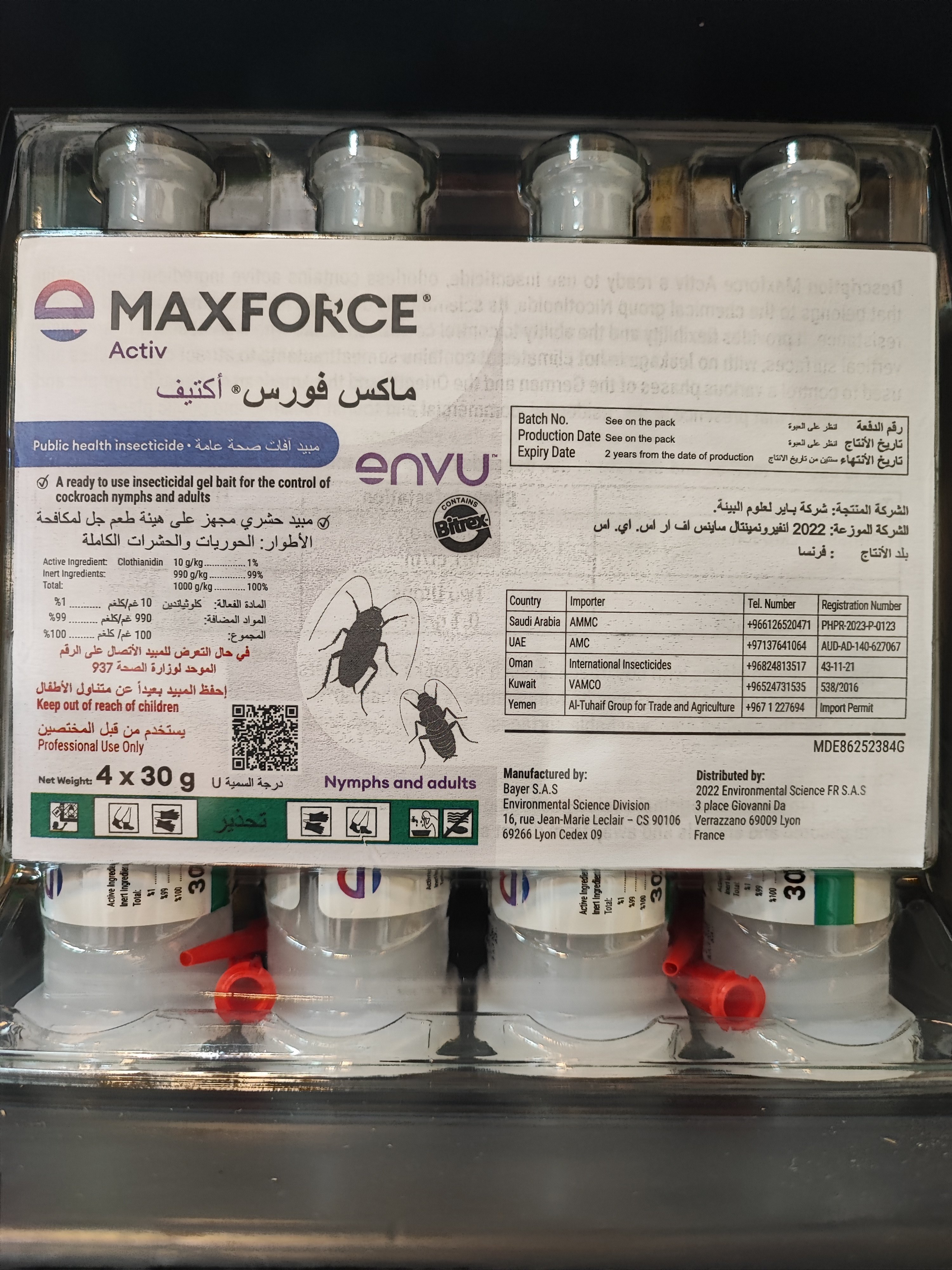 مبيد حشري مجهز على هيئه طعم جل لمكافحه جميع انواع الصراصير بجميع اطوارها الحوريات والحشرات الكامله.